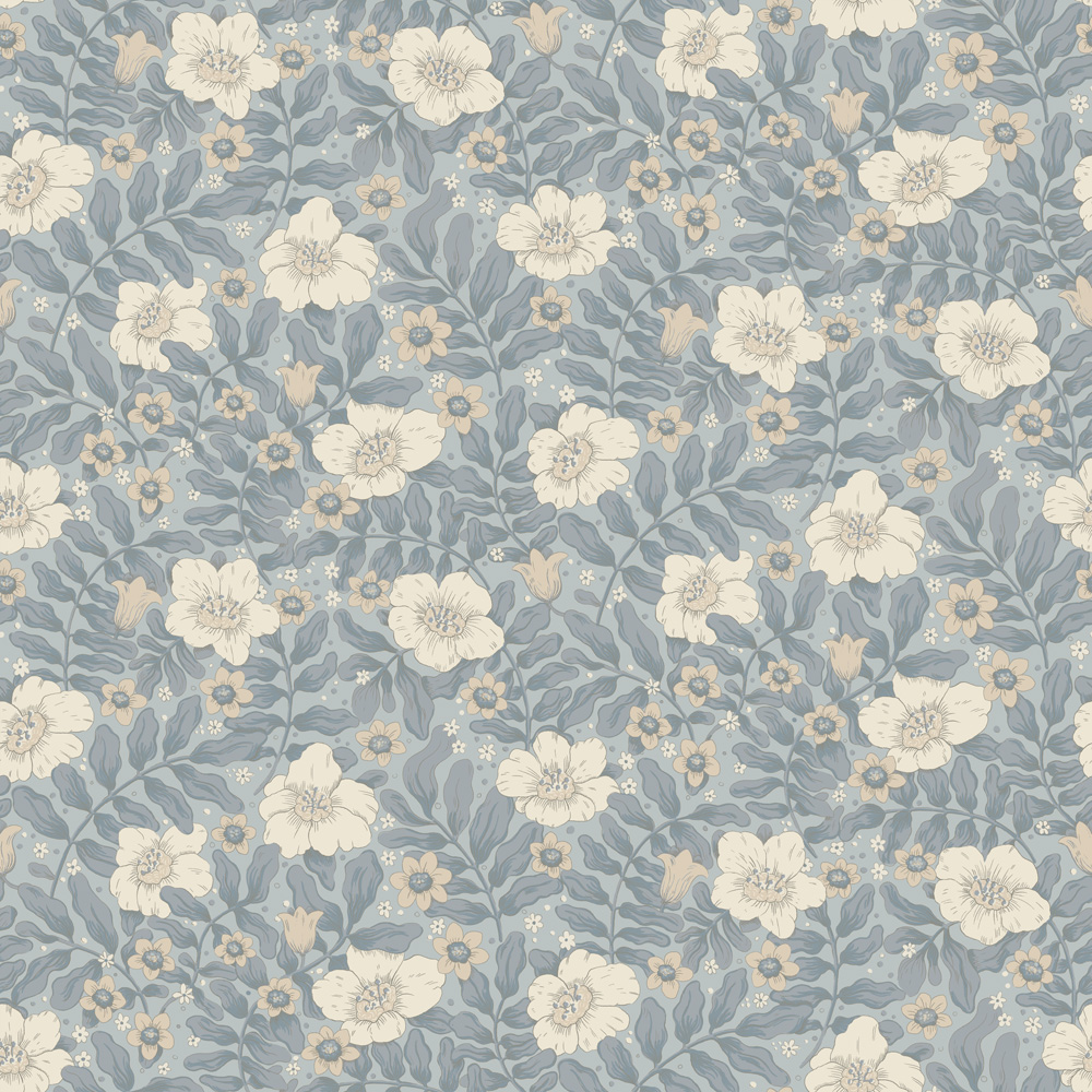 Tapeten Maggan med ljusblå botten och blommor och blad i vitt blått och beige ger rummet en uppfriskande och sval känsla. Ett hav av sommarblommor som böljande vajar i vinden skapar ett angenämt blickfång på väggarna. Här står sommaren i blom året om och pryder vänligt ditt hem.Rekommenderat Lim: Hernia Non-WovenFör bästa resultat rekommenderar vi en grundmålad yta att tapetsera på.