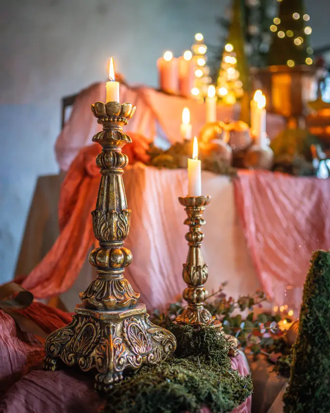 Vacker ljusstake i guldfärg i fin rokoko stil.