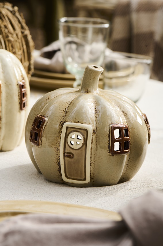 Huslykta - Lykta hus - Pumpa - Stengods - 15x14x15 cm