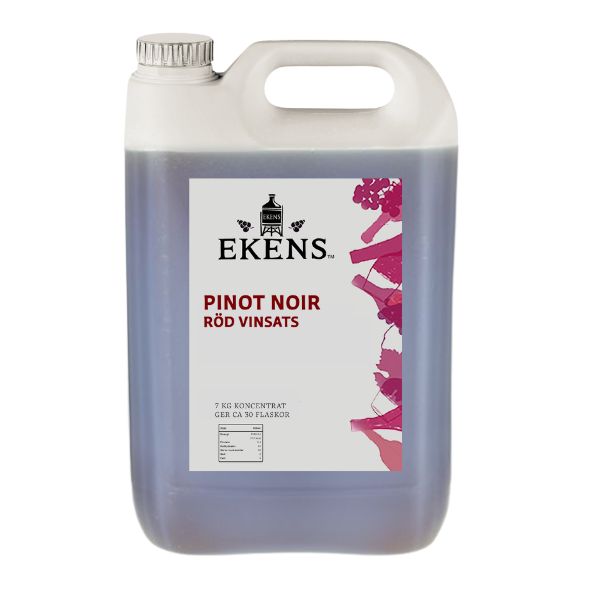 Ekens Vinsats ger dig upp till 30 flaskor som efter 3-4 veckor är färdigt att buteljera. Ett prisvärt och lätttillverkat kvalitéts vin från Ekens.Ekens Pinot Noir Vinsats är ett ljust rött med bäriga smaker som lagrat kan ge mer rustika toner av skog och mull. Passar bra både till husmanskost och matigare sallad.Tips för tillverkning och lagring:Lagras med eller utan franskt ekspån, beroende på om fatkaraktär önskas. För att få fatkaraktär kan 3-5 gram franskt ekspån per flaska tillsättas. Justera ned mängden vatten om ett kraftigare vin önskas. Lagras mörkt och svalt.Vinsatsen innehåller5 liter koncentratVinjästJässtopp (kaliumsorbat E202 och vinsvavla E224)Fullständiga instruktioner