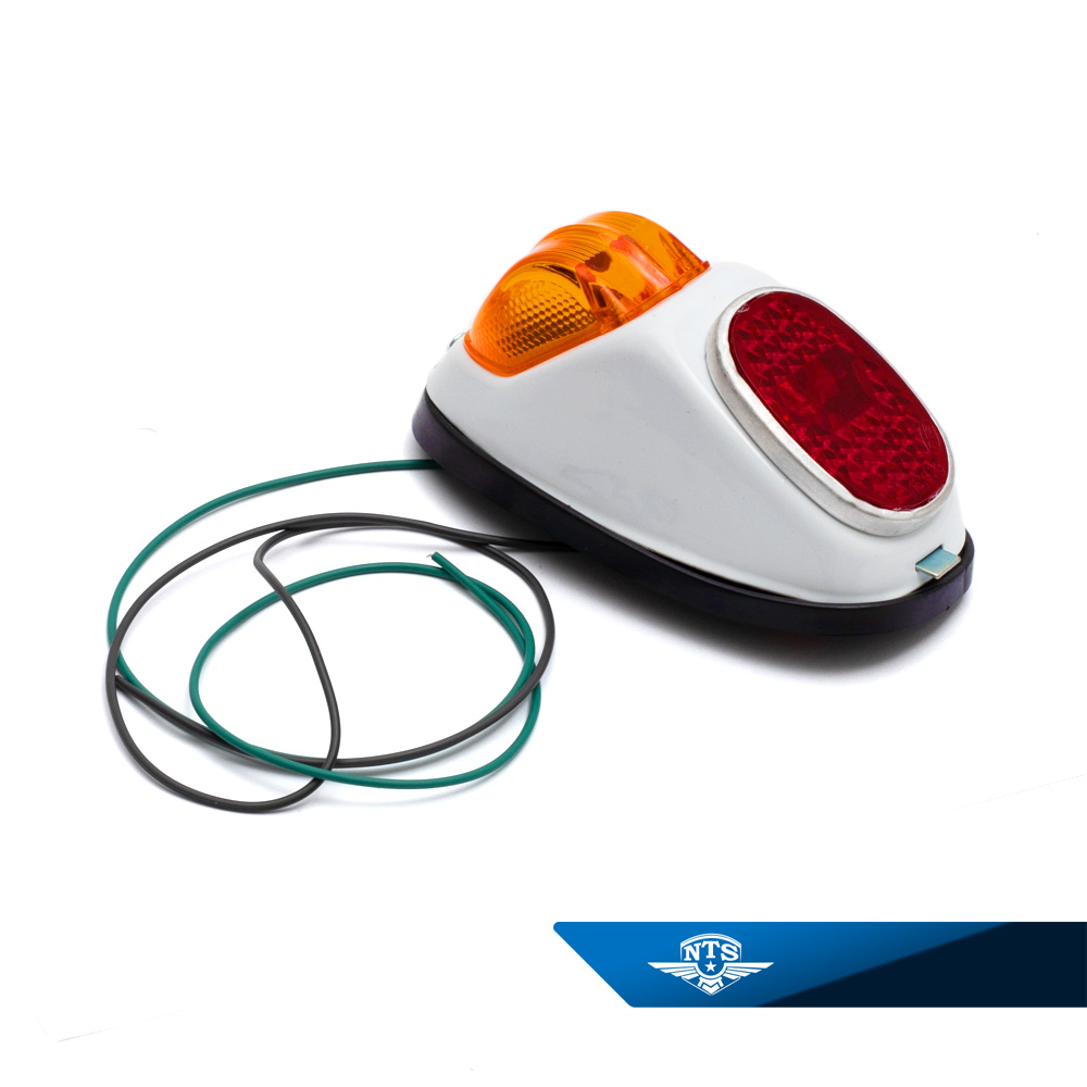 Baklykta av Hella-Typ, vitlackerad med bromsljus.Motsvarar MCB originalnummer: 21020 / 21022Storlek på kåpan mot gummit, ~138x71mmGlödlampor ingår ej.BA9S sockel på både broms och bakljusGlaset kan ha små repor och skav.Passar bla:Tempo/DBS: Saxonette & SwingFram: Clipper & Comet CrossMCB: 1185, 1207, 1263 & 1279Monark: 1221, 1231, 1241, 1251, 1261, 1273 & 1291Mustang: 610 (Scooter), 616, 617 Lyx, 617S, 618, 618S, 618 Lyx, RocketREX: Clubmaster & Sportmaster