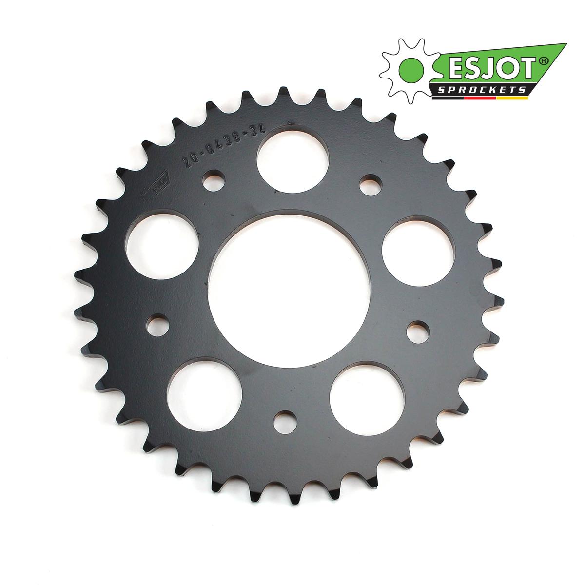 SvartlackadeEsjotdrev är tillverkade i Tyskland. Exakt måttolerans och de håller minst dubbelt så länge som Asientillverkade drev. Köp till Esjot kedja så får du bästa möjliga transmission.Detta drev skall ha en 420 kedja.Esjot tillverkade drev till Zündapp, Kreidler, Sachs och ett antal andra mopeder redan på 60 och 70 talet.