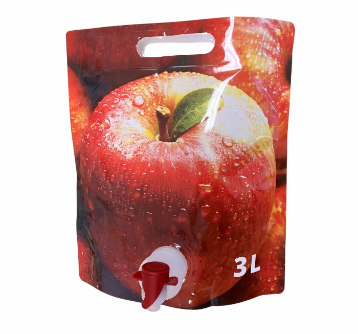 Påse som kan stå upp själv, med tappkran. Perfekt för att praktisk förvaring och servering av stilla dryck. Kan varmfyllas med het, pastöriserad must eller dryck för bättre hållbarhet.Fyll upp påsen med fruktmust, vin, eller annan stilla dryck och montera sedan tappkranen. Se till att tappkranen sätts fast ordentligt vid montering för att undvika att den lossnar av misstag. En hållare för bag in box underlättar vid fyllning.Möjlig att varmfylla med vätska upp till ca 90 ºC.Tillverkad av tålig flerskiktsplast. Med tappkran som överensstämmer med EU:s engångsplastdirektiv.Certifierad, livsmedelsgodkänd.Kapacitet 3 liter.
