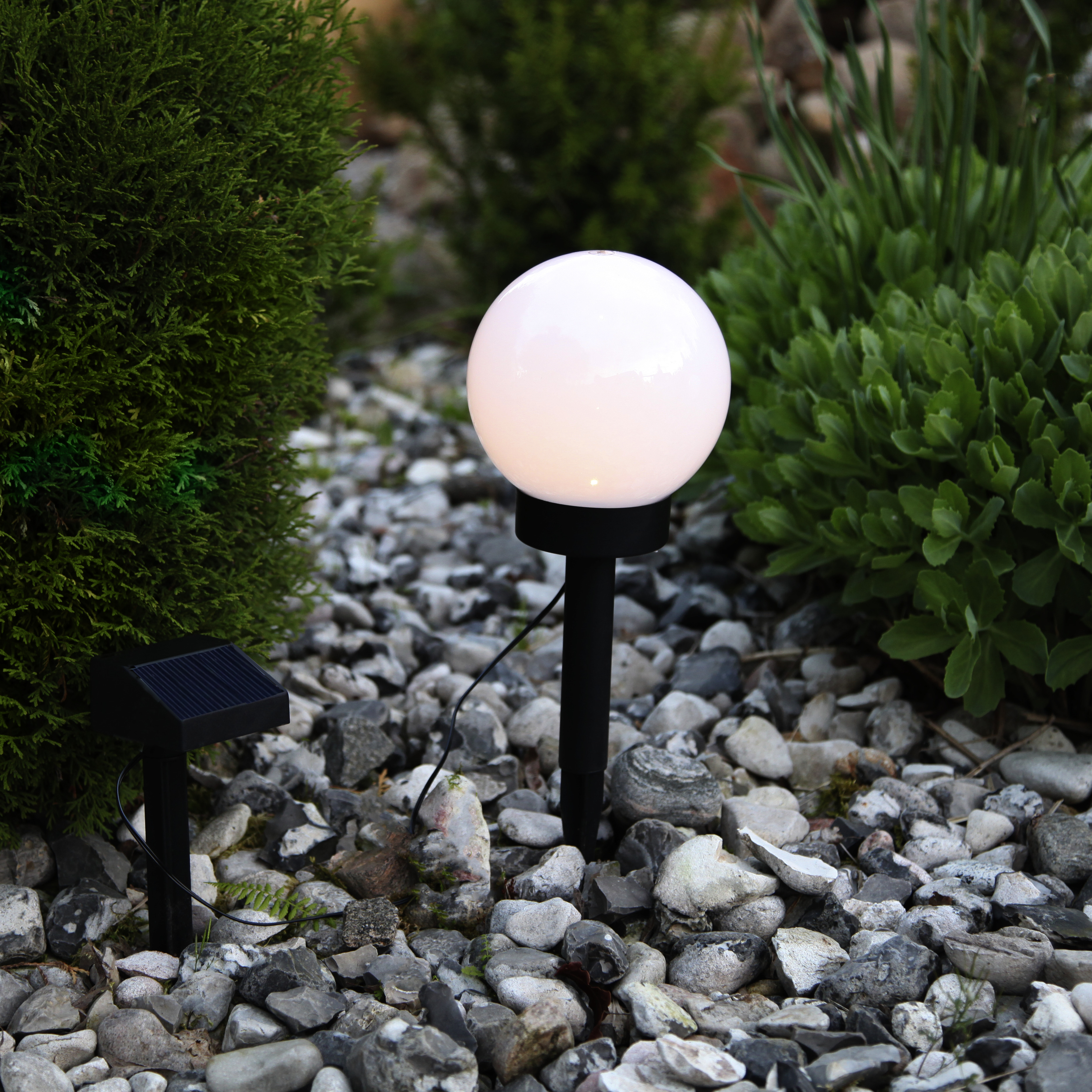 Beställningsvara.Soldrivet trädgårdsklot med justerbar höjd. Fin dekoration att ha i trädgården med många placeringsmöjligheter. Klotet lyser upp med 20 Lumen och ger ifrån sig ett fint sken.