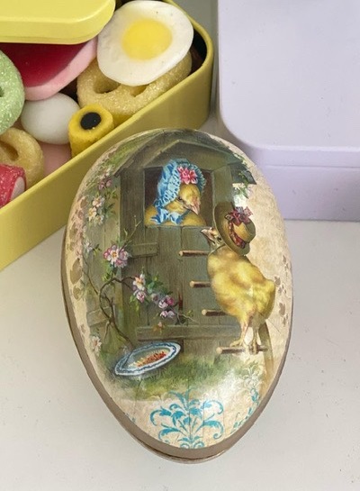 Vackert påskägg med fint vintagemotiv som ger en härlig nostalgisk och gammaldags känsla. Tillverkat i papper. En perfekt påskpresent till både stora och små. Mått: 18 cm