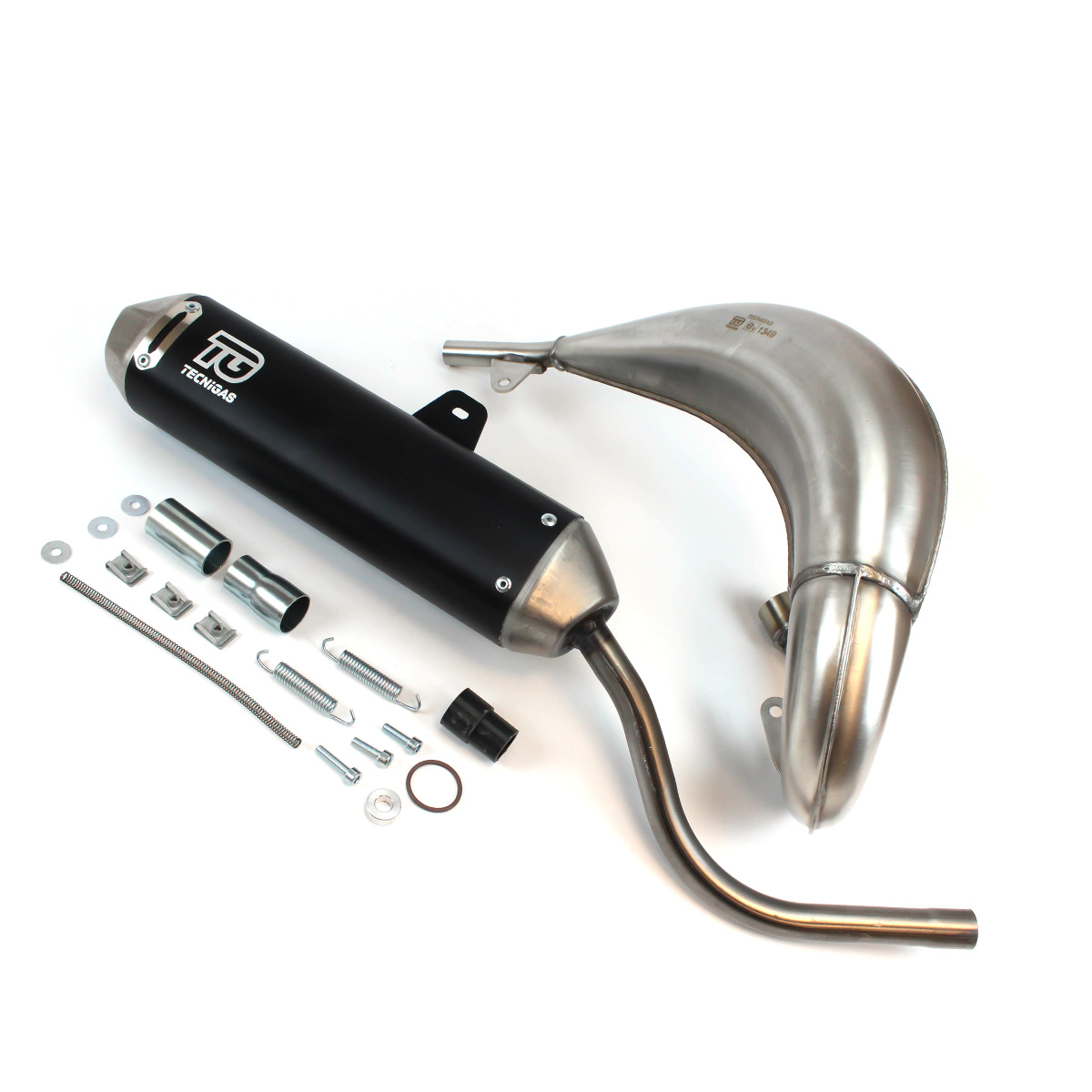 Då detta avgassystem inte är originalet så kan du behöva bestycka om förgasaren för att få motorn att gå bra.Har du original Dellorto PHBN/PHVA 16/17,5mm förgasare så bör 6mm munstycken i storlekar runt 75-100 vara ett bra riktvärde.