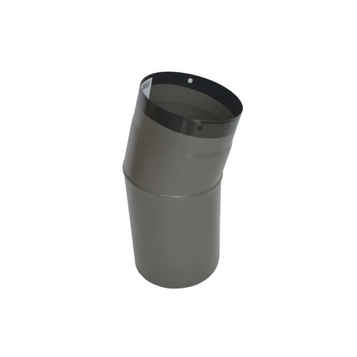 Emaljerad Rörböj 15 Grader ∅ 150 MMRörböj med mattemaljerad reptålig yta. Även invändigt emaljerade för undvikande av genomslag av sot/kondens/tjära. Monteras med den krympta delen uppåt.Färg: Grå