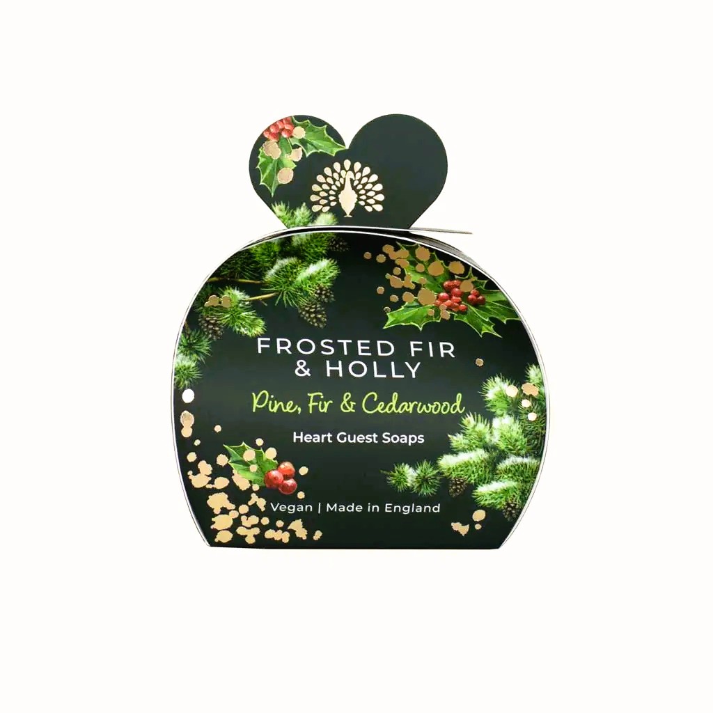 Jultvålar i presentförpackning, gran, tall och cederträ 3 x 20 g innehåller 3 små tvålar som är formade som hjärtan. Tvålarna har en julig och frisk doft av rökelse, kanel och tall, balanserad av mjuka toner av vanilj och trä.Tvålarna är tillverkade för hand av rena vegetabiliska oljor och berikad med krämigt sheasmör som vårdar och återfuktar huden.Innehåller:3 x 20 g små hjärtformade tvålar