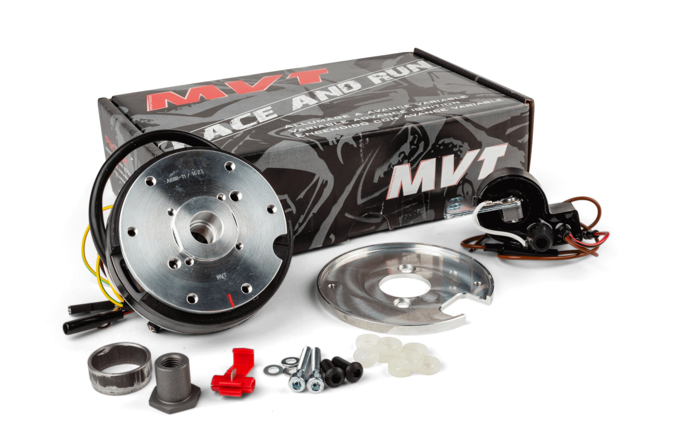 Mvt premium är ett brytarlöst innerrotorsystem med ljusspole på 55w.Tändningen är retarderande.Levereras med cdi-box.Voltregulator behöver köpas till. Inkopplings instruktion medföljer.Tillse att tändsystemet får tillräcklig kylning. Svänghjulskåpan kan behöva modifieras för detta!Har även inbyggd varvtalsbegränsning som man kan välja att koppla in om man nu skulle råka vilja ha det.
